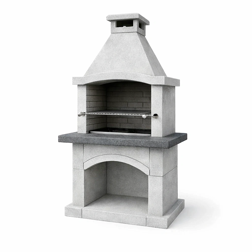 Der Gartengrillkamin besteht aus hitzebeständigem Beton.