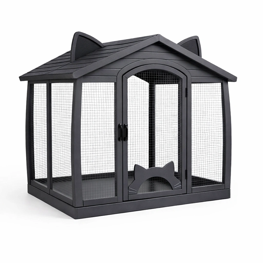 Der Haustierkäfig besteht aus einem robusten Holzrahmen mit strapazierfähigem verzinktem Metalldraht. Die Abmessungen sind 80 cm Länge, 60 cm Breite und 75 cm Höhe. Geeignet für den Innen- und Außenbereich.